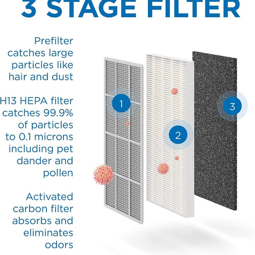 تصفیهکننده هوای Medify مدل MA-15 یک تصفیهکننده هوای قدرتمند است که طراحی شده است تا هوای محیط را از ذرات معلق، آلودگیها، بوهای نامطبوع و ذرات میکروسکوپی پاک کند. این دستگاه با استفاده از فیلترهای HEPA و کربن فعال، توانایی حذف ذرات ریز و مواد شیمیایی مضر از هوا را داراست. تصفیهکننده هوای Medify MA-15 قابلیت پوشش چرخشی حدود 500 متر مکعب را داراست و مناسب برای استفاده در اتاقها و فضاهای کوچک تا متوسط است. این دستگاه دارای سیستم فیلتراسیون 3 مرحلهای است که به شما کمک میکند تا هوای تمیز و سالمی در محیط خود داشته باشید. حداکثر پوشش: فضاهای کوچک تا 660 فوت مربع را در یک ساعت، 330 فوت مربع را در 30 دقیقه تمیز می کند (CADR 150). ایده آل برای خانه ها، آپارتمان ها، اتاق خواب ها، اتاق نشیمن، ادارات، مدارس، دانشگاه ها، کلاس های درس، بیمارستان ها، رستوران ها و سایر مشاغل. فیلتراسیون HEPA H13: برای حذف 99.9 درصد ذرات مضر از جمله آلرژن ها، بوها، VOCs، دود، گرده، شوره حیوانات خانگی، گرد و غبار، مه دود، آلاینده ها و موارد دیگر به اندازه 0.1 میکرون قابل اعتماد است. ذرات ریزتر از HEPA H11 (0.3 میکرون) را می گیرد. ULTRA QUIET: از بین 3 سرعت فن انتخاب کنید، با کمترین تنظیم تقریباً بی صدا. با ولتاژ 220 ولت با حداقل نویز 35 دسی بل و حداکثر 51 دسی بل کار می کند. برای محتاطانه ترین عملکرد، حالت خواب را فعال کنید تا چراغ های پانل دستگاه کاملاً کم شود. ویژگی های آسان برای استفاده: شامل یک صفحه لمسی شیک با تایمر 0-8 ساعت، سرعت فن، حالت خواب، نشانگر تعویض فیلتر و قفل کودک است که هم برای بچه ها و هم برای حیوانات خانگی عالی است. فیلترهای دوگانه به این واحد جمع و جور اجازه می دهد تا هوا را در هر اتاق به طور موثر تمیز کند.